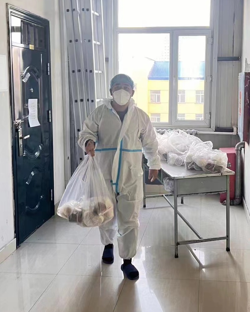 李伟曾是学校组织部下派的驻村精准扶贫干部,圆满完成驻村任务后,调入学校工会,负责礼堂管理工作。他平时工作很繁忙很辛苦,刚刚完成军训会操音响保障服务工作,就主动请缨下沉到学生公寓。他驻守在学校兴业公寓七楼,负责2022级新生静默期的日常管理工作。他与其他志愿者一起挤在一间宿舍内休息,每天早上5点多钟起床,组织180多名同学进行核酸检测,按时把一日三餐消杀后送到每名同学手中。