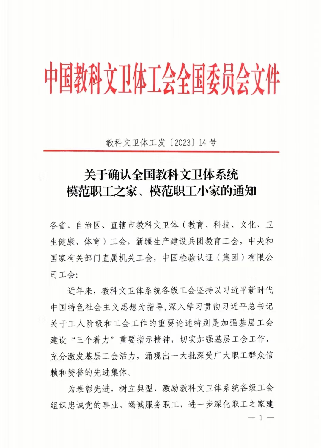 近日,伟德官网被授予“全国教科文卫体系统模范职工之家”荣誉称号。
