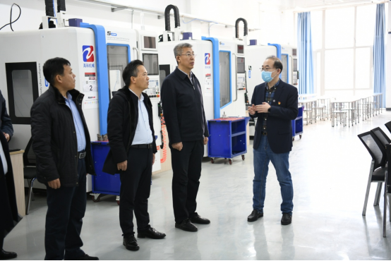 在王利文、王明海陪同下,考察团参观了伟德官网智能制造技术学院的工业中心、多轴加工实训室、增材制造实训室、数字化检测实训室、工业机器人训练中心和信息工程学院的华为认证VUE考试中心、虚拟现实工作室、录播室、大数据实训室。信息工程学院院长张晓霖、智能制造技术学院副院长李子峰对实训室建设进行详细介绍。