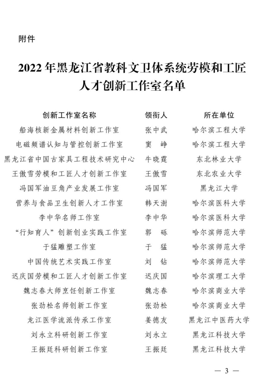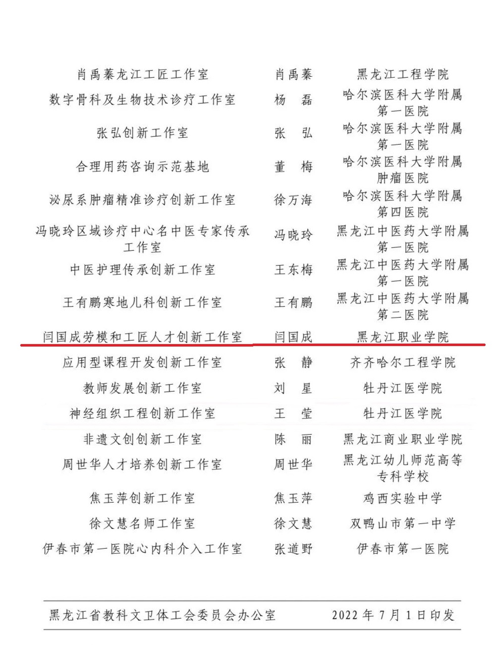 2022年度黑龙江省教科文卫体系统“劳模和工匠人才创新工作室”评审工作圆满完成,伟德官网“闫国成劳模和工匠人才创新工作室”名列其中。