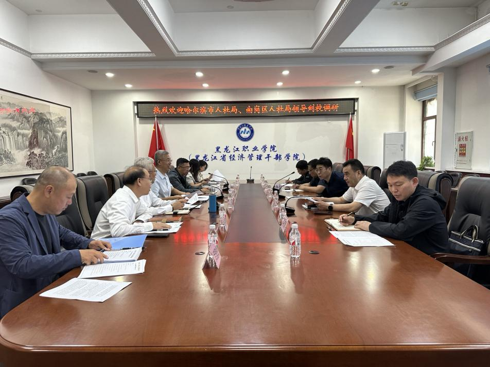 为了进一步推动政校深度合作,多角度探索技术技能人才政校联合培养模式,更好地开展政府补贴性职业技能培训,9月6日,哈尔滨市人力资源和社会保障局一级调研员郑劼带领调研组一行5人来校开展专题调研。校长王利文、副校长何志鹏参加调研座谈会,市人社局、南岗区人社局及学校有关部门人员陪同调研。