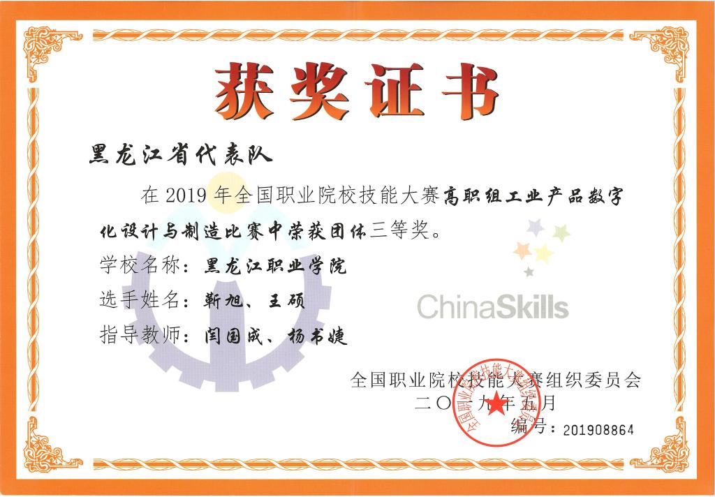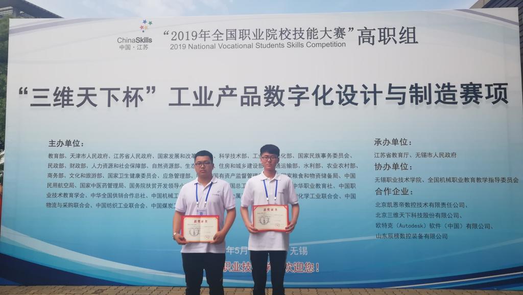 2019年全国职业院校技能大赛“工业产品数字化设计与制造”赛项在无锡举行,来自全国32个省、市、自治区及4个国际队的86支队伍共172名选手参加了比赛。经过角逐,伟德官网机械工程学院学生王硕、靳旭组成的bevictor伟德官网代表队喜获大赛三等奖。
