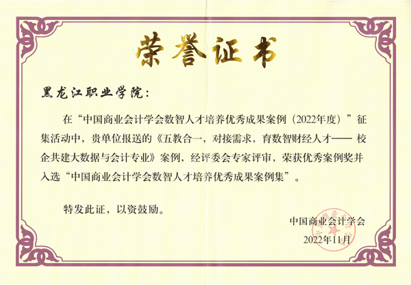 近日,中国商业会计学会数智人才培养优秀成果案例(2022年度)评审活动结束,伟德官网会计金融学院报送的教学案例《五教合一,对接需求,育数智财经人才——校企共建大数据与会计专业》荣获优秀成果案例奖,并入选“中国商业会计学会数智人才培养优秀成果案例集”。