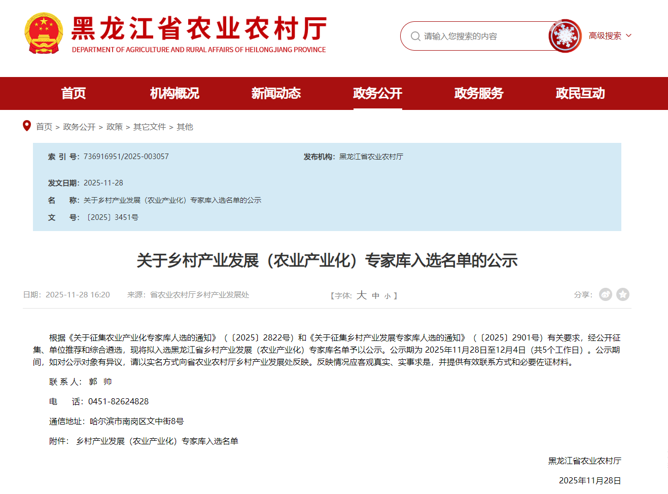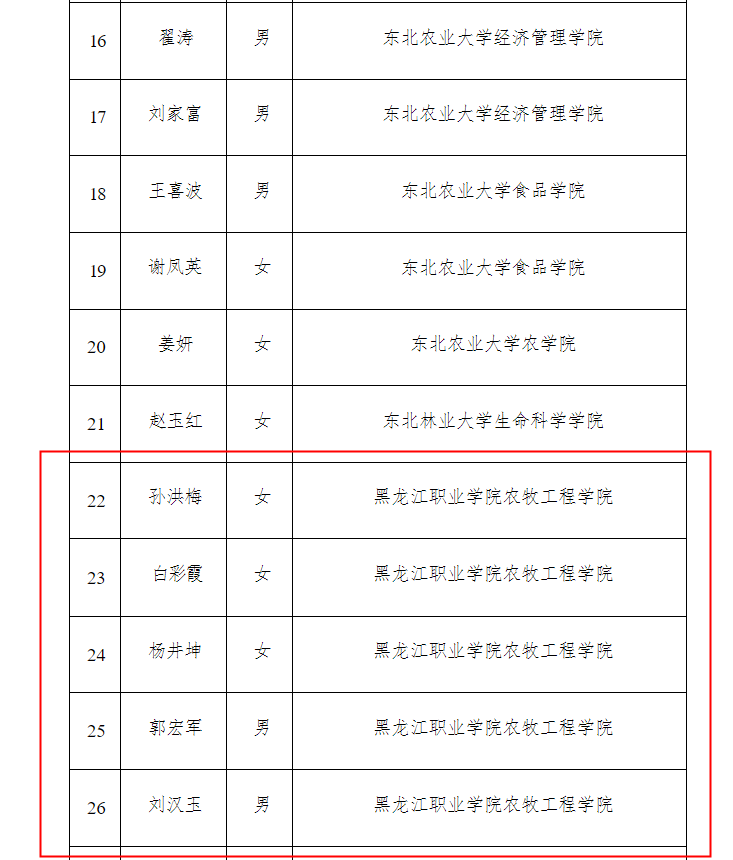 近日,黑龙江省农业农村厅公布乡村产业发展(农业产业化)专家库入选名单。伟德官网农牧工程学院教师孙洪梅、白彩霞、郭宏军、杨井坤、刘汉玉凭借扎实的专业素养和丰富的实践经验成功入选,为黑龙江省农业产业化发展注入高校智慧与力量。