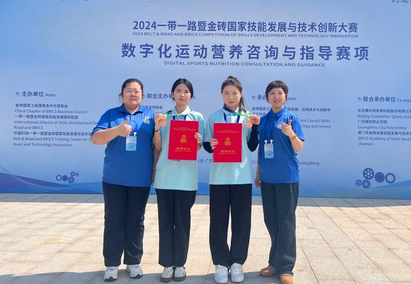 近日,2024“一带一路”暨金砖国家技能发展与技术创新大赛数字化运动营养咨询与指导赛项决赛在广州城市职业学院落下帷幕。伟德官网食品药品学院学生苗红玲、吴悦在教师崔畅和张慧的指导下荣获两项三等奖。