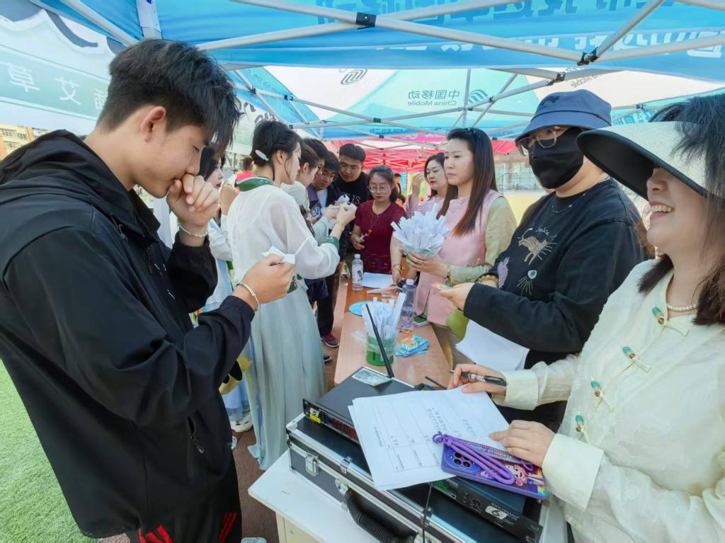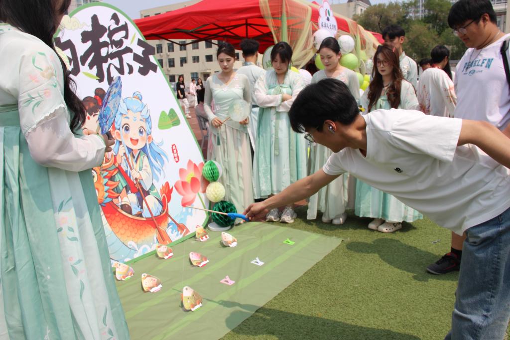 民俗互动区上演“非遗奇妙游”,师生们巧手编织五彩丝线、制作艾草香囊,在投壶竞技与射五毒游戏中触摸千年民俗记忆,身着汉服的学生穿梭其间,重现古时端午盛景;传统文化知识竞答区掀起“最强大脑”风暴,学生们争相抢答诗词歌赋、历史典故及民俗风情类题目;文艺展演区琴韵悠扬,霓裳翩跹、国风新声绕梁而歌。学子们以青春姿态诠释传统文化新魅力。