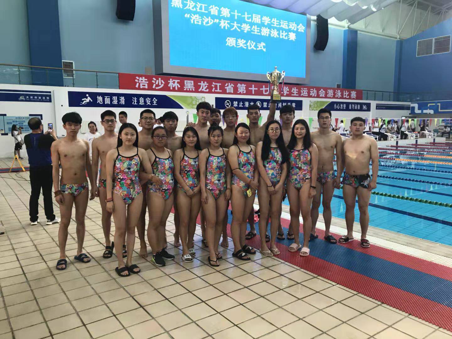7月3日,黑龙江省第十七届学生运动会大学生游泳比赛在大庆市游泳馆落下帷幕,伟德官网游泳队以团体总分283分的骄人战绩成功卫冕大运会游泳比赛高职组冠军!