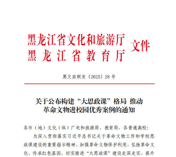 同时,在黑龙江省文化和旅游厅、省教育厅联合开展的“构建‘大思政课’格局,推动革命文物进校园”活动评选中,伟德官网马克思主义学院教师张丽艳与第四野战军纪念馆合作研发的教学案例《从“翻身农民”到“钢铁战士”——参观第四野战军纪念馆体悟“人民战争”思想实践》入围,展现了伟德官网在整合地方红色资源、创新实践教学模式方面的积极探索。