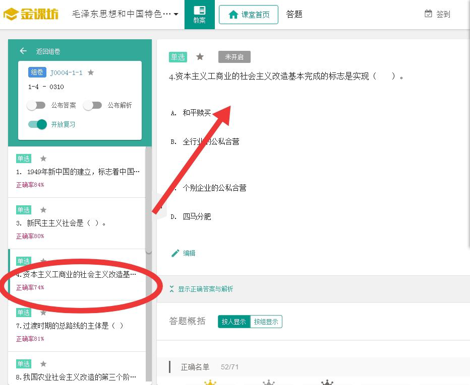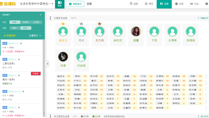 课前指导网课自学。选取了“智慧树-知到”平台下,陕西交通职业技术学院罗晓春教授主讲的《概论》课,提供给学生进行课前自学,要求学生带着教师提出的问题完成2-3个规定的视频,并运用所掌握的知识点到“金课坊”中完成重点知识测试,以检验自学效果。