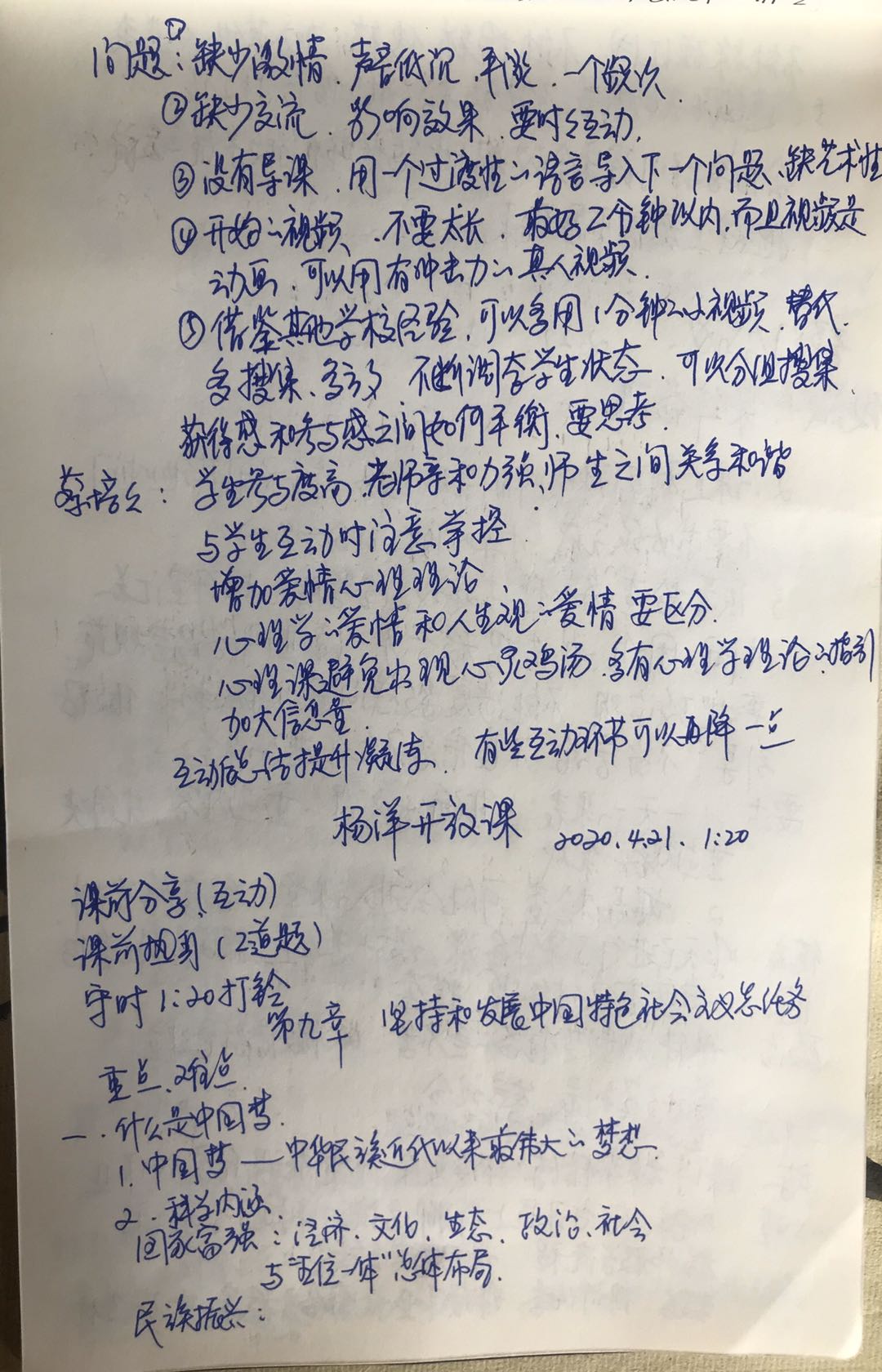高政治站位,夯实责任。疫情防控是一场阻击战,总体战,人民战争。在这场全民战争中,每个人都不是旁观者,作为一名思政课教师更要提高政治站位,扛起肩上的责任,化“危”为“机”,教育引导学生正确对待疫情,深刻认识国情,厚植爱国情怀,坚定“四个自信”。停课不停学,质量不打折,为指导教师更好适应线上教学,增强学生的获得感,思想政治教研部组织开展示范教学,八名教师勇挑重担,精心准备,以实际行动践行使命担当,投身抗疫,共克时艰。