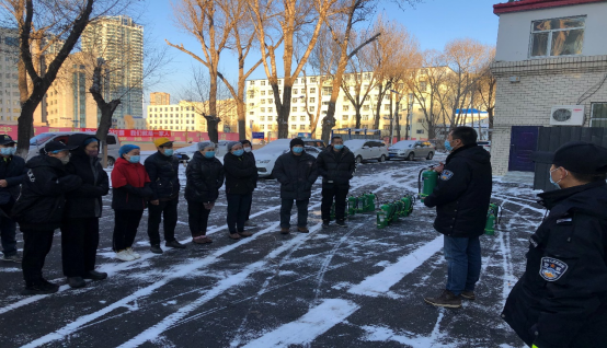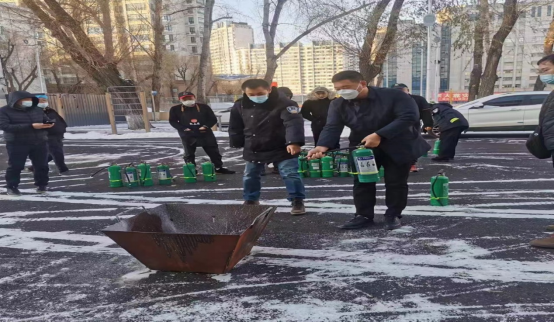 会后,全体参会人员到室外进行了灭火器、灭火毯和消火栓的实操演练。