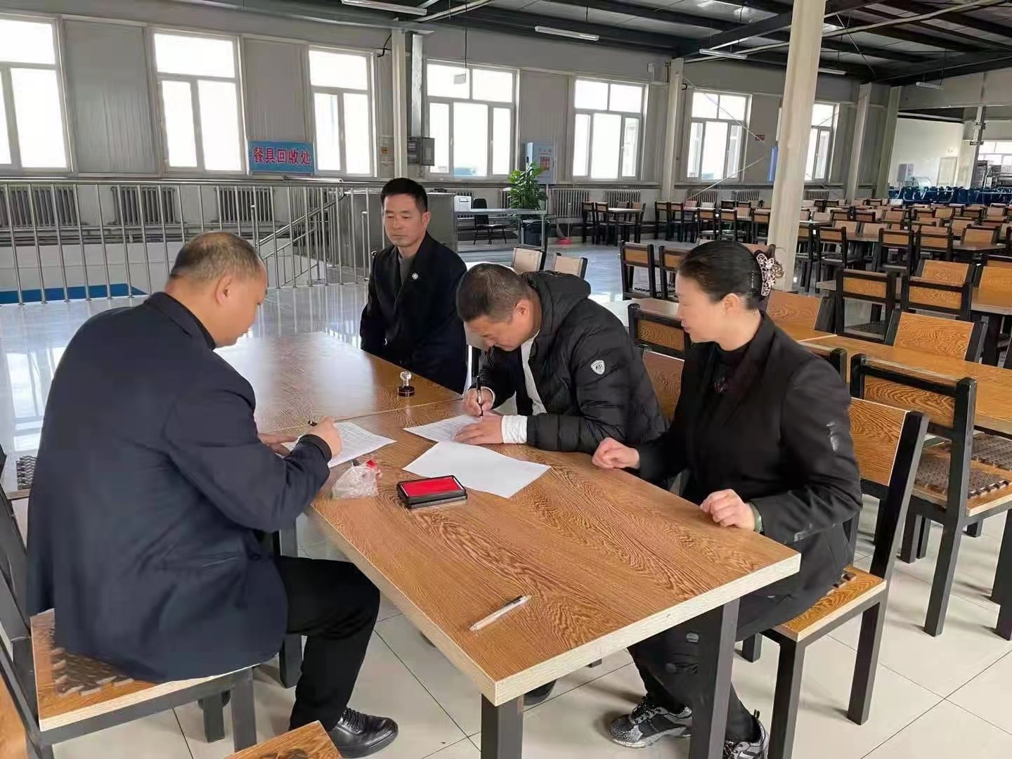 培训结束后,饮食中心与餐饮公司现场签订了2021年餐饮疫情防控食品安全责任状。餐饮公司经理张斌代表全体员工承诺在经营过程中严格遵守饮食中心疫情防控制度及各项管理规章制度,确保食品安全,全力保障餐厅的安全运营。