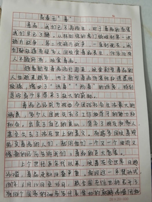 三是组织了一次禁毒知识答题活动。将认识毒品、预防毒品、远离毒品等知识点融入到各类题型当中,通过问答的形式将禁毒教育深入到学生心里。