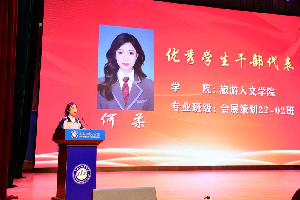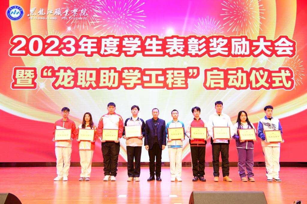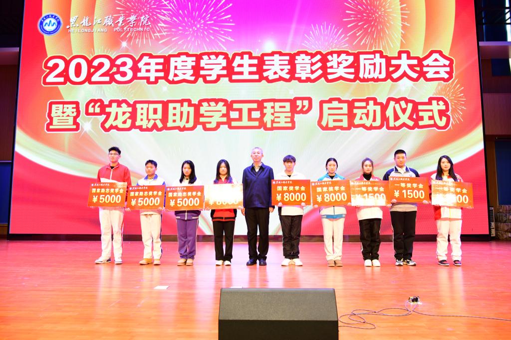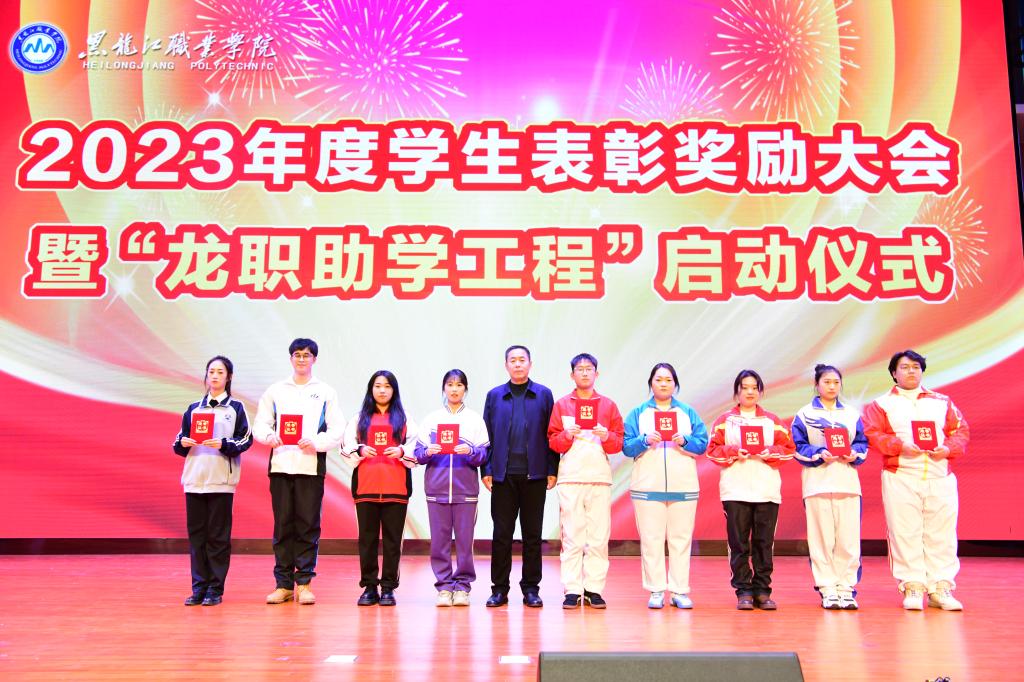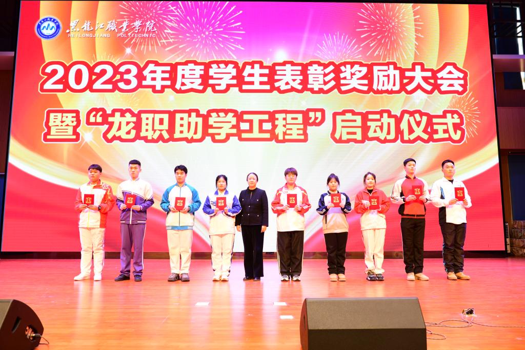 大会在庄严的国歌声中拉开帷幕。李伟宣读《关于表彰2022—2023学年学校奖学金获得者及学生先优模的决定》,吴艳秋宣读《龙职助学工程实施方案》,校领导为优秀班集体、三好学生、优秀学生干部、奖学金获得者代表颁发奖牌和证书,为家庭经济困难学生代表发放返程车票。会议现场100名干部教师与100名受助学生结成“一帮一”对子,5名学生代表发言。