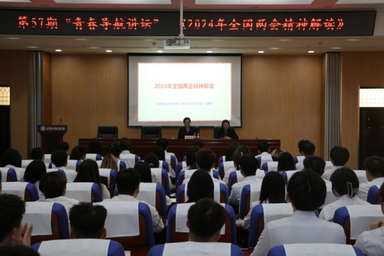 为深入学习贯彻2024年全国两会精神,引领广大青年在深化学思践悟中明确方向、在强化思想引领中凝聚共识,3月25日,校团委在工匠楼11楼会堂举办“第57期青春导航讲坛”,中共黑龙江省委党校二级教授刘瑞华作题为《2024年全国两会精神解读》的专题讲座,讲座采取线上线下相结合的方式进行。校学生团工委、校学生会、校大学生社团联合会、校大学生新媒体中心、龙职易班全体学生及各二级学院学生代表350余人现场聆听讲座,第二校区部分学生同步线上参会。讲座由学生工作部党总支书记石倩主持。