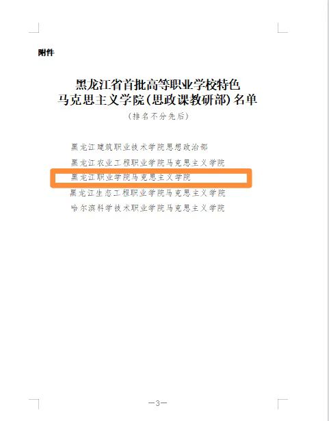 12月6日,黑龙江省教育厅公布了首批高等职业学校特色马克思主义学院(思政课教研部)5所,伟德官网马克思主义学院成功入选。