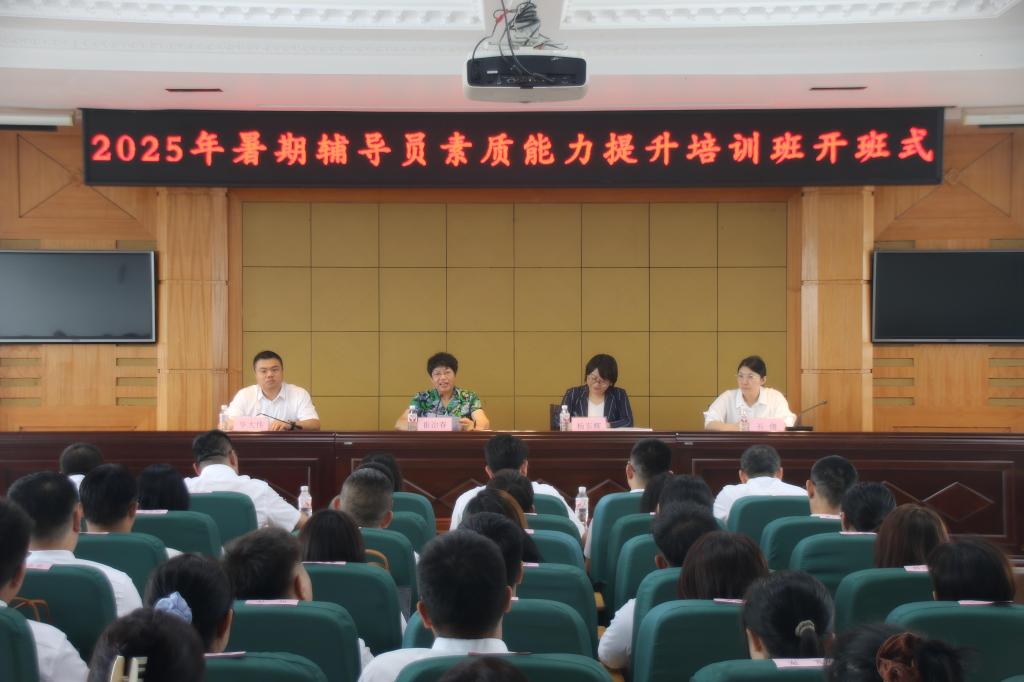 8月25日至28日,学生工作部在清华楼报告厅举行2025年暑期辅导员素质能力提升培训班。党委书记崔治春出席开班式并讲话,党委副书记杨东辉,各二级学院党总支副书记、学管办主任、全体辅导员和学生工作部工作人员参加开班式。开班式由学生工作部部长毕大伟主持。