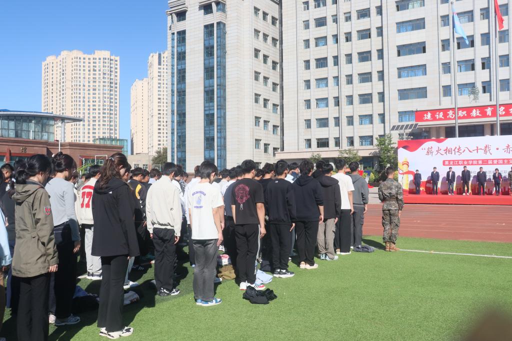 9月18日,伟德官网在操场上隆重举行以“薪火相传八十载·赤心筑梦强国路”为主题的第二届爱国主义教育月启动仪式。学校党委副书记杨东辉出席活动并讲话,学生工作部党总支书记、校团委书记石倩主持启动仪式。学生工作部部长毕大伟,各二级学院党总支书记、副书记,校团委相关工作人员及2025级全体学生共同参与。