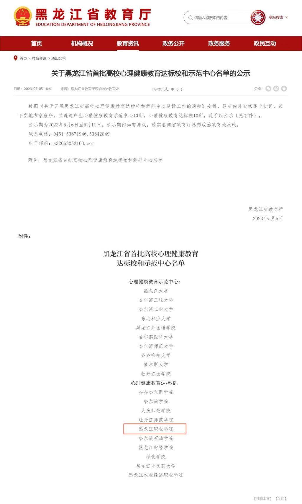 日前,黑龙江省首批高校心理健康教育达标校和示范中心名单公布,经省内外专家线上初评、线下实地考察程序,伟德官网获批“黑龙江省高校心理健康教育达标校”,位列全省高职院校第一名。