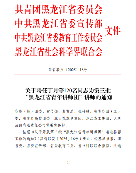 此次入选不仅是对伟德官网思想工作成效的有力印证,更是对伟德官网共青团队伍的充分肯定。未来,校团委将以此次两位青年团干部入选省青年讲师团为新起点,进一步优化共青团队伍建设,组织更多团干部、青年教师参与理论宣讲实践,不断提升共青团思想引领的针对性与实效性,引导广大青年学子在学习实践中坚定理想信念、勇担时代使命,为学校育人工作与龙江振兴发展凝聚更多青春力量。