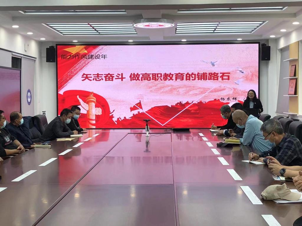 ▲杨东辉作题为《矢志奋斗 做高职教育的铺路石》专题报告
