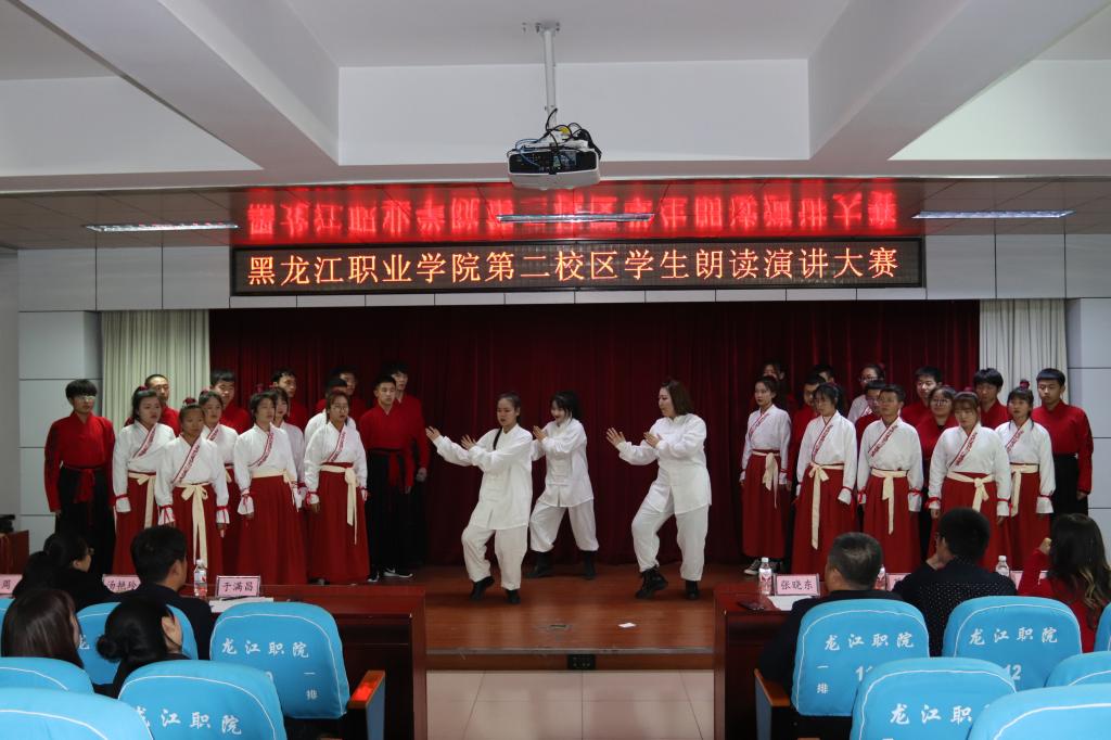 大赛经过各二级学院的选拔与推荐,共有六支队伍从众多班级中脱颖而出。值此庆祝新中国成立70周年之际,各支参赛队伍选题突出、立意准确,设计新颖、形式多样,服装整齐、特色鲜明,在内容的表达上,更是围绕“中国”“龙职风采”“专业特色”等关键词,抒发了学生们作为“中国人”的豪迈与“龙职人”的情怀,为在场的师生呈现了激情澎湃、震撼入心的精彩演绎。最终信息工程学院软件技术2019-03班获得大赛一等奖,农牧工程学院动物医学2019-04班、食品药品学院药品经营2019-01班荣获二等奖;农牧工程学院畜牧兽医2019-02班、信息工程学院物网技术2019-01班、食品药品学院食品安全2019-01班荣获三等奖。