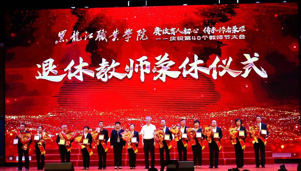 在龙职的发展进程中,有一群谦虚谨慎、追求卓越,品德高尚、甘为人梯的龙职人。他们为龙职的发展和国家职业教育贡献了人生最宝贵的年华,他们是龙职发展和进步的见证者和建设者。大会举行了退休教职工荣休仪式,崔治春、王利文为十二位荣休教师颁发荣休纪念牌,向他们表达最崇高的敬意和最真挚的祝福,感谢他们为学校发展做出的贡献。