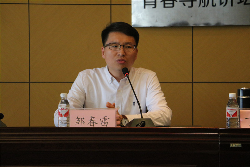 5月15日,学校第38期“青春导航讲坛”成功举办,本期讲坛邀请“地球之子”丁兆瑞老师作为主讲嘉宾,为同学们作题为《同是地球之子,共建绿色家园》的环保专题讲座。校党委副书记周家郁出席活动并聆听整场讲座。来自各二级学院学生代表近240人参加活动。讲坛活动由校团委书记邹春雷主持。