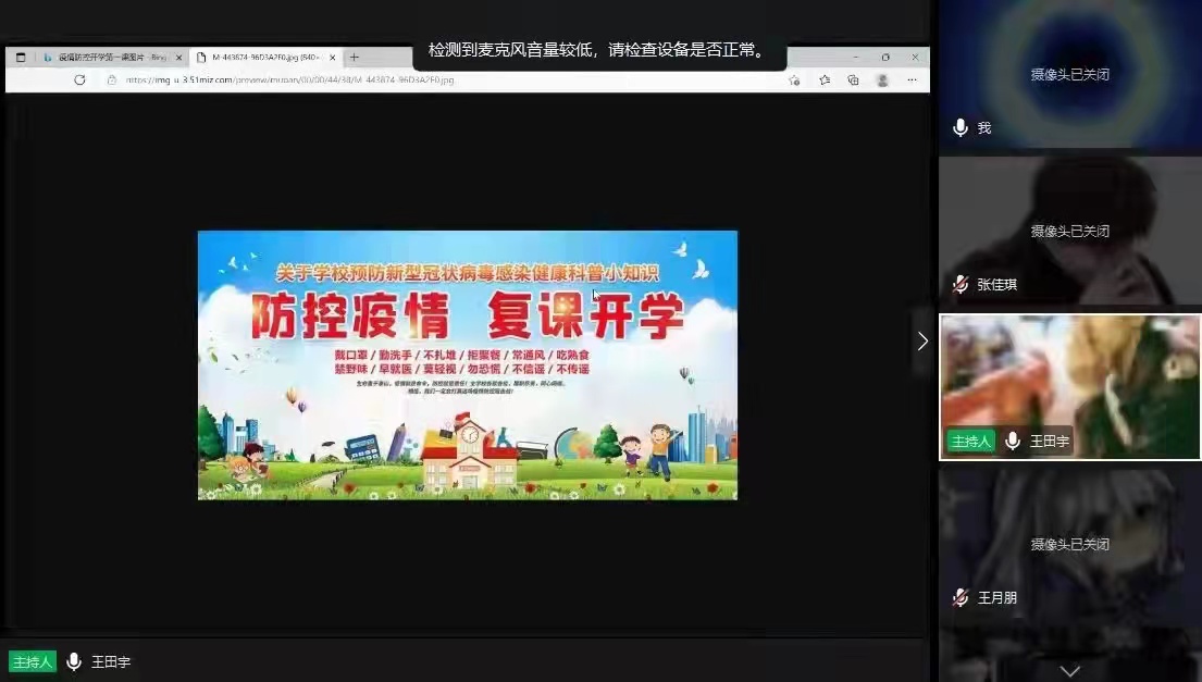 活动以班级为单位,采取钉钉、腾讯会议、微信视频等线上形式进行。农牧工程学院开展以“科学防控疫情,文明健康随行”为主题的教育活动,辅导员向同学们传达了学校疫情防控工作有关要求,询问了当前所处中高风险地区学生健康状况,并向学生普及疫情防控知识,帮助学生在常态化疫情防控期间继续筑牢防疫观念,稳妥有序推进学生的开学复课。通过疫情防控教育会的开展,同学们纷纷表示会注意监测自己的身体情况,及时报告健康情况;平时在学习生活中要合理安排作息时间、提高网课学习质量、注重膳食搭配、出入公共场所要佩戴医用口罩等。