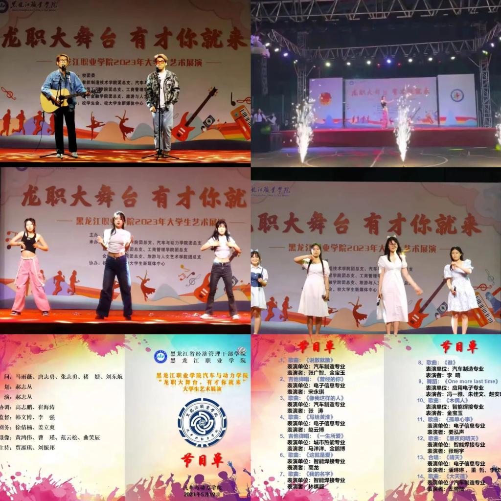 为深入开展学习贯彻习近平新时代中国特色社会主义思想主题教育,落实立德树人根本任务,实现文化铸校战略,扎实推进“铺路石”文化建设,弘扬“龙职”精神,打造“龙职”品牌,在学校第八届“铺路石”文化节期间,在5月14日-5月19日为期一周时间里,由校团委主办、一校区各分院团总支承办的“龙职大舞台·有才你就来”2023年大学生艺术展演在校园篮球场的露天舞台隆重举办。