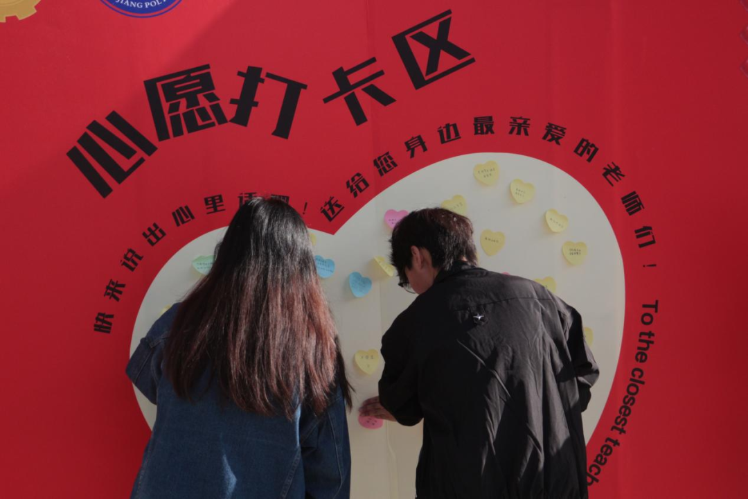 活动现场,一面由全校1071名教工姓名拼成的“我们是学生的铺路石”打卡墙矗立在清华楼门前,老师们纷纷来到打卡墙前找到自己的名字并拍照留念。他们脸上洋溢着灿烂的笑容,留下了美好的剪影。