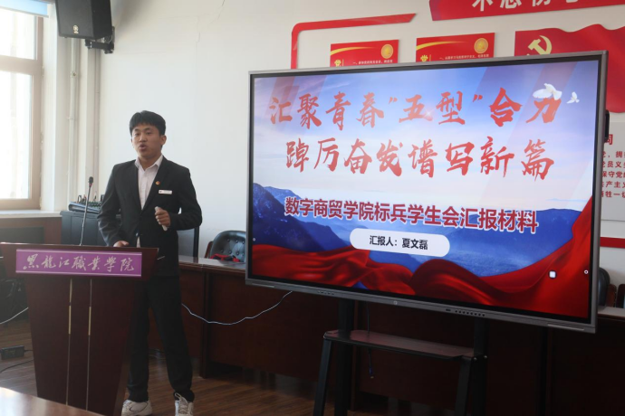 ▲数字商贸学院进行工作述职