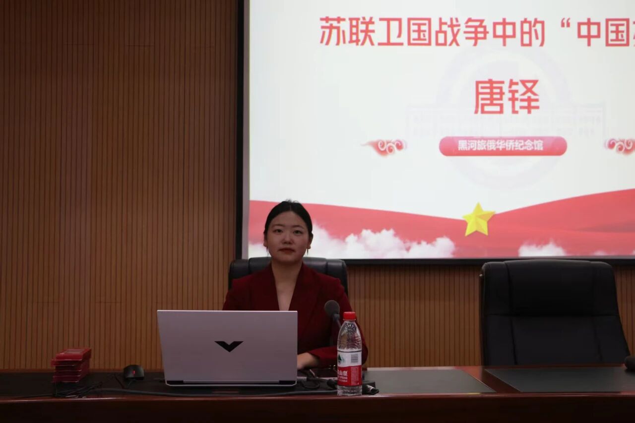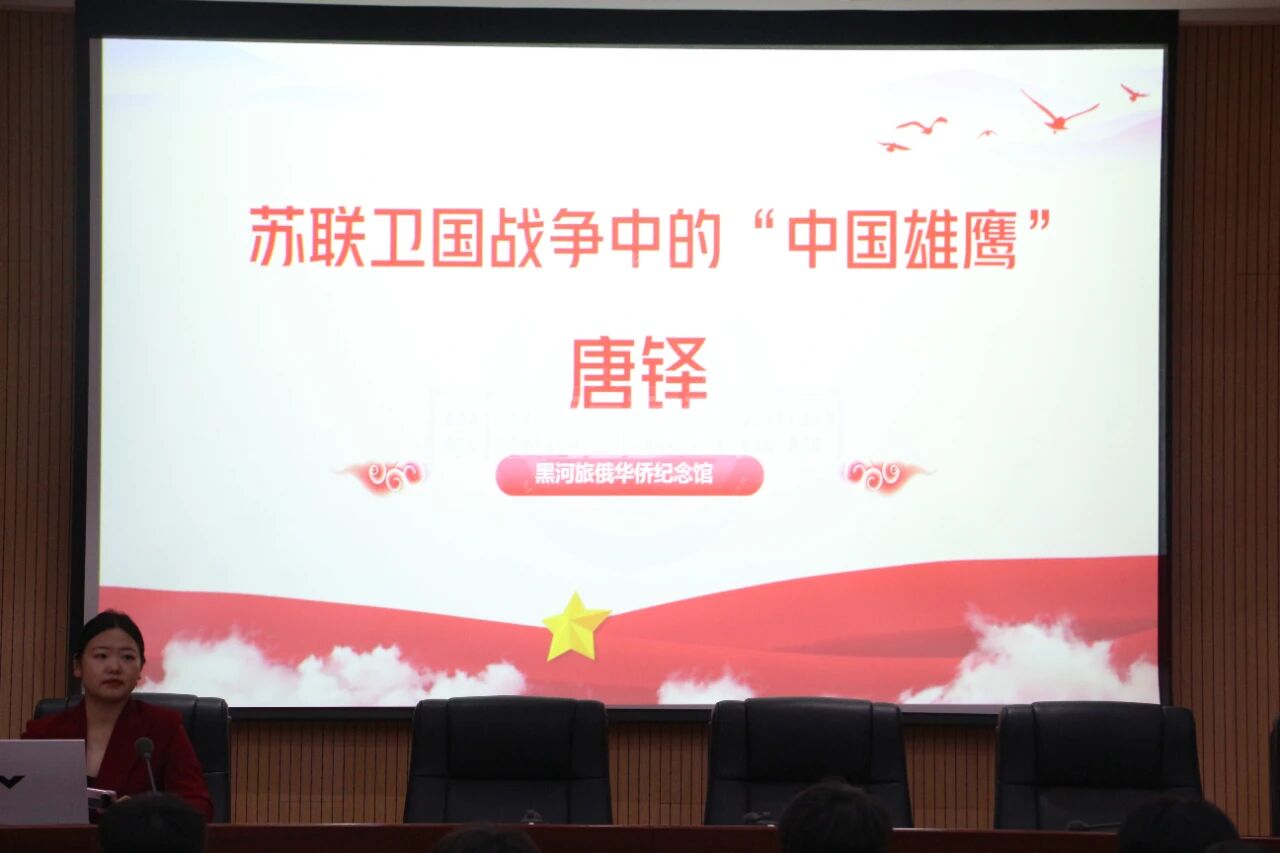 为深入贯彻习近平新时代中国特色社会主义思想,弘扬民族精神,进一步提升学生爱国主义情怀,巩固爱国主义教育成果,9月18日下午,伟德官网团委组织学生代表在工匠楼报告厅共同聆听《苏联卫国战争中的中国“雄鹰”——唐铎》专题讲座。此次活动既是校团委与黑河旅俄华侨纪念馆签约共建“实践育人”单位的重要落实,也是双方协同推进红色教育、构建“大思政”体系的生动开篇。