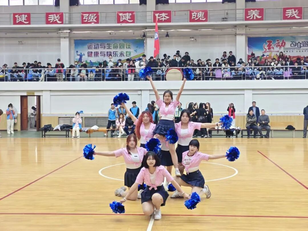当中场哨声响起,啦啦操队员们身着流光溢彩的表演服,手握如火焰般跳跃的花球,以挺拔的身姿、灵动的舞步跃入视野。动感的鼓点与青春的旋律碰撞,她们时而如雏鹰展翅,时而如浪花翻涌,每一个高难度托举、每一次默契的队形变换,都似将阳光与活力揉碎撒向全场。观众席的欢呼声浪层层叠起,将赛场气氛推向顶点,仿佛连空气都染上了青春的滚烫温度。