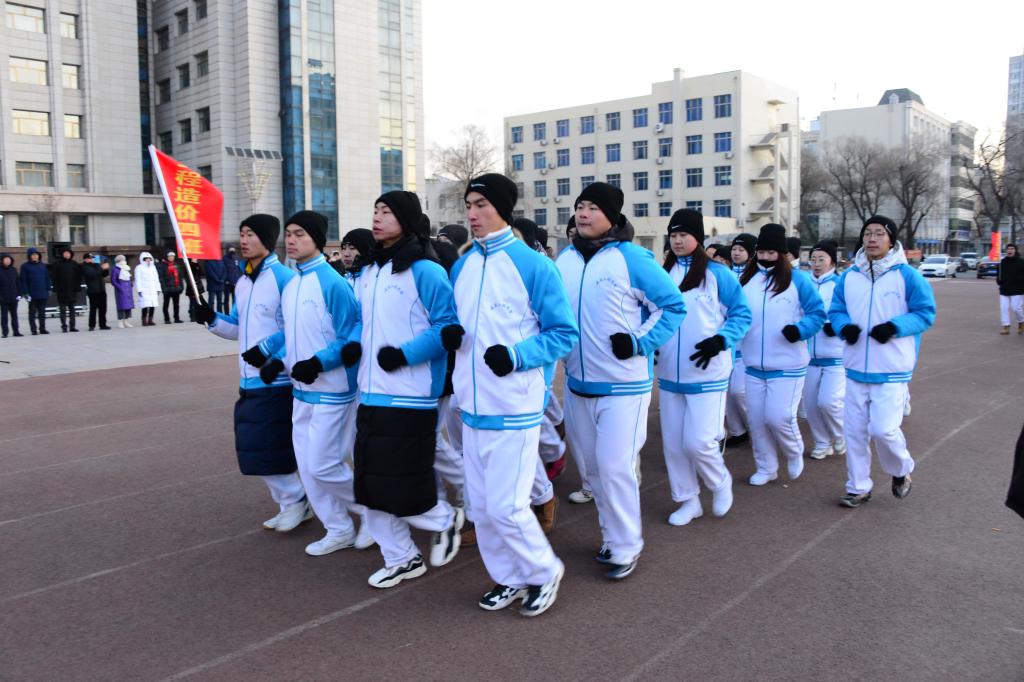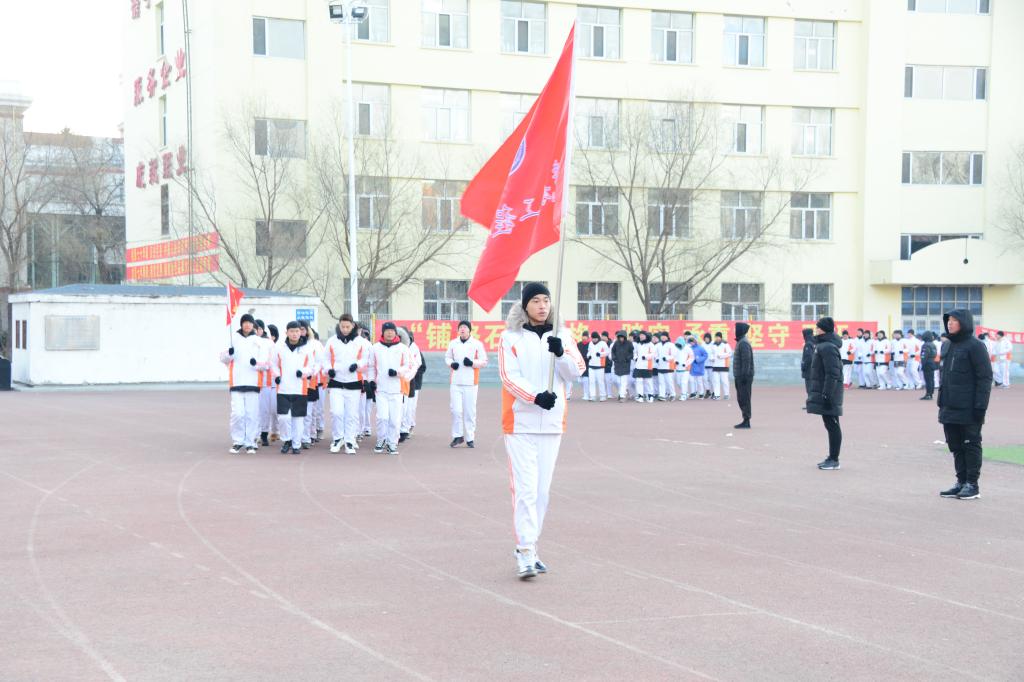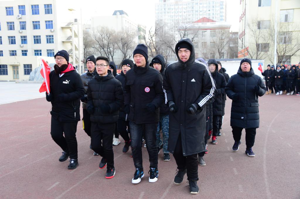 首先,举行了庄严的升国旗仪式。接着进行了91个班级的早军操汇报表演,同学们在零下17摄氏度的校园,战严寒斗风霜,昂首阔步,整齐的步伐声、响亮的口号声此起此起彼伏,让冬日的校园充满了勃勃生机。此次大会共有32个班级被评为“军操标兵班”。