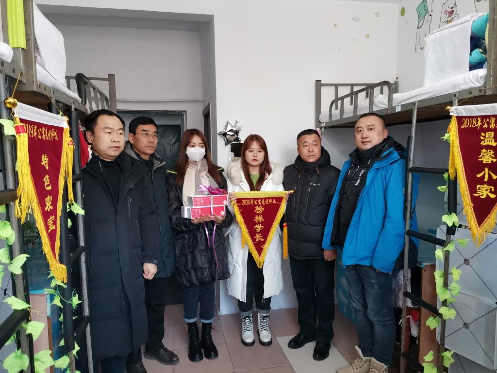 为展示学生公寓标准化建设成果,体现学生寝室特色,营造文明整洁、安全温馨的生活环境。十一月份,第二校区学生处开展了学生公寓“先优寝室评比”活动,通过视频短片和校园广播等宣传形式,营造了浓厚的活动氛围。经各二级学院申报,学生处与二级学院联评打分,评选出“标兵寝室”、“温馨小家”、“文明集体”、“榜样学长”四项荣誉集体共41个。11月27日,各二级学院党总支书记、学工部副部长和学管相关领导为先优寝室进行了颁奖和授旗,并激励获奖学生再接再厉,保持荣誉,在构建和谐公寓建设中再创佳绩。