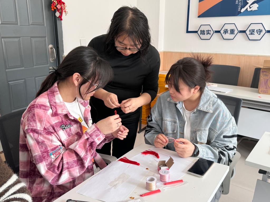 为深入践行“三全育人”理念,推动中华优秀传统文化创造性转化,4月17日、24日公寓辅导员张雪婷、石影、孙彩月、张嘉馨走进学生社区组织开展了两期“红绳巧编 结结生花”非遗技艺中国结手工制作实践活动。