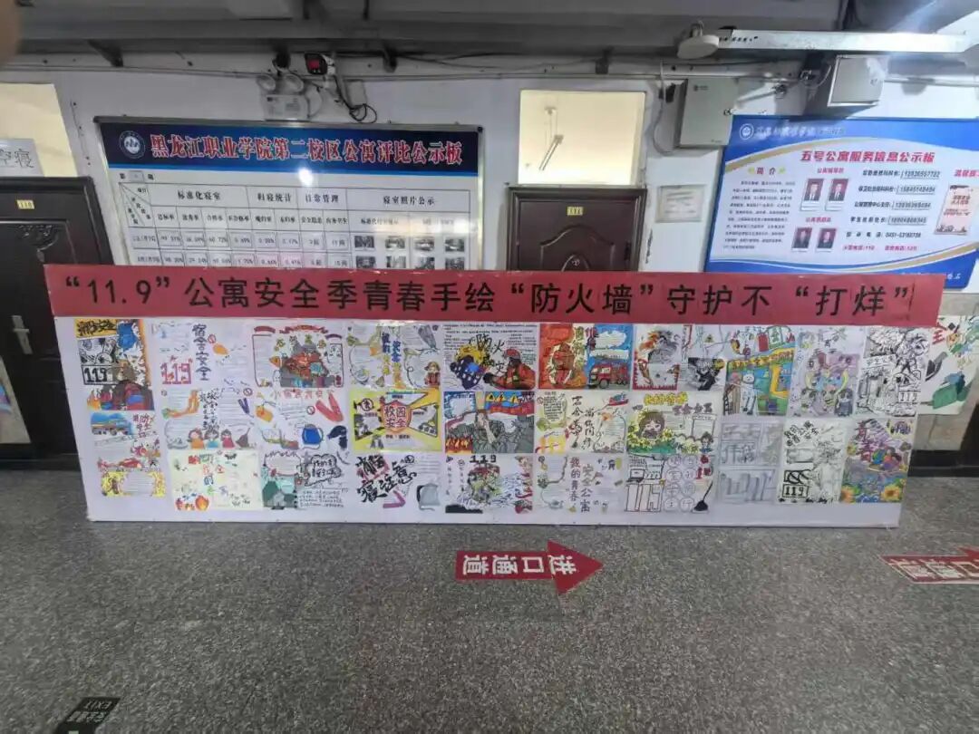 绘画展以“我的青春安全公寓”为核心,各二级学院学子踊跃参与,60余幅手抄报、漫画作品新鲜出炉。作品以生动笔触勾勒宿舍安全场景,用鲜明色彩警示消防隐患,既展现创意巧思,更传递安全理念。优秀作品在公寓楼大厅集中展出,“公寓安全‘119’,青春守护不‘打烊’”的主题标语格外醒目,引发学子广泛共鸣。
