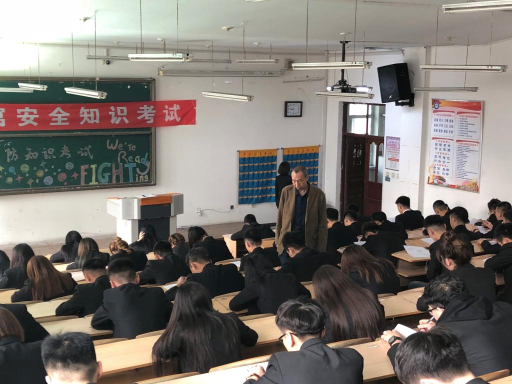 为了巩固安全培训成果,全体公寓辅导员、公寓学生干部还参加了学生公寓安全知识考试,学生工作处陈宇辉副处长参与监考。考试方式为闭卷笔试,内容既有消防安全相关常识,又紧密结合学生公寓安全管理实际,特别是把学生公寓中容易忽略的问题和安全应知应会要点纳入试题,最大限度的避免了理论与实际脱节问题。考试氛围紧张而严肃,旨在检验消防安全知识教育培训工作成果,进一步推动学生公寓安全工作再上台阶。