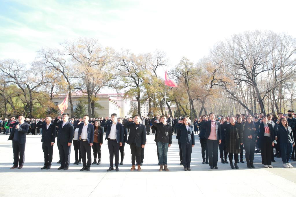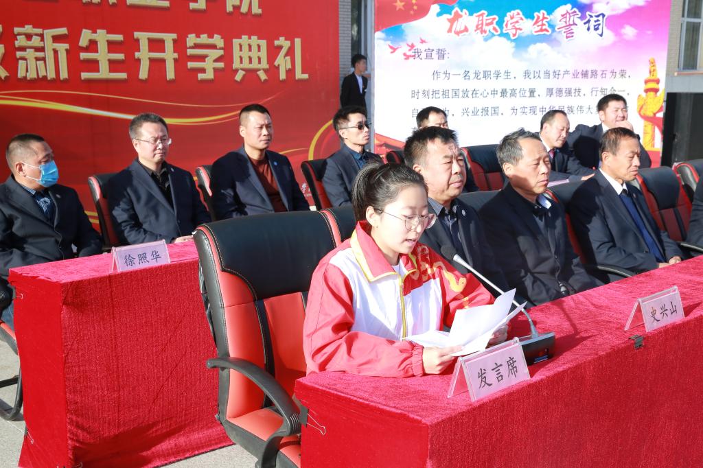 最后,全体新入职教师在食品药品学院教师于满昌领誓下进行“龙职”教工誓词宣誓,全体学生在信息工程学院物网技术2018-01班胡银杰同学领誓下进行“龙职”学生誓词宣誓。