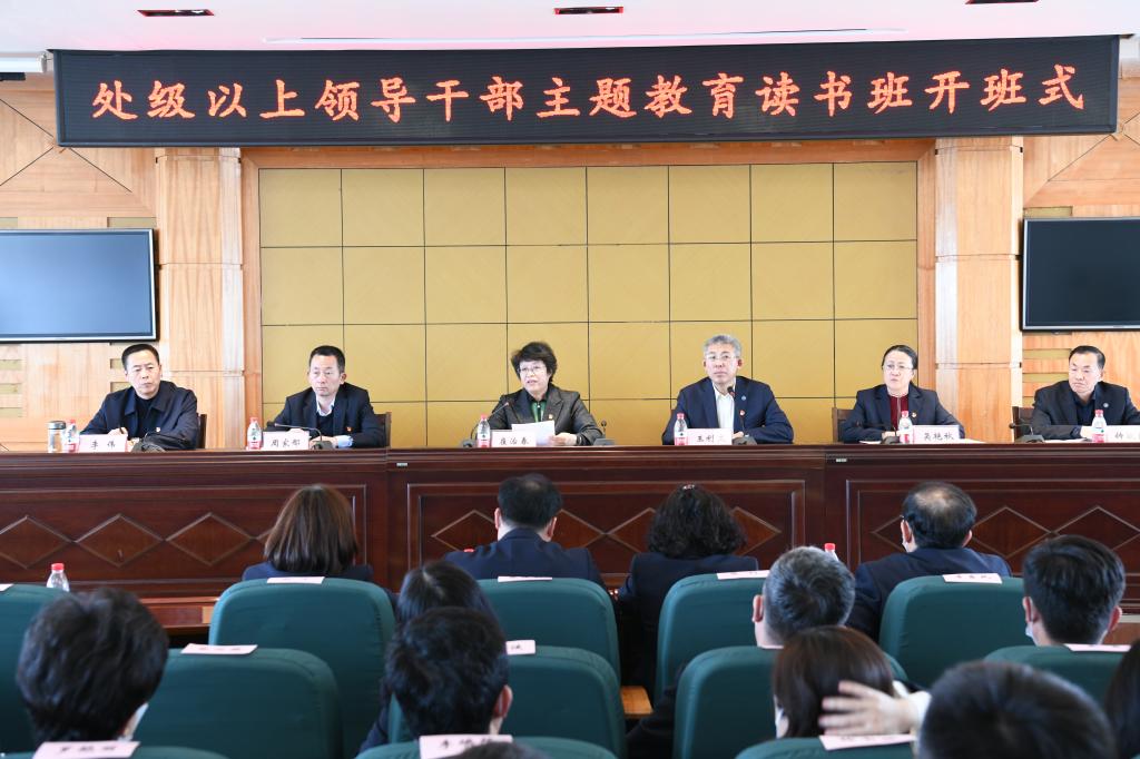 ▲学校党委书记崔治春在主题教育读书班开班式上讲话