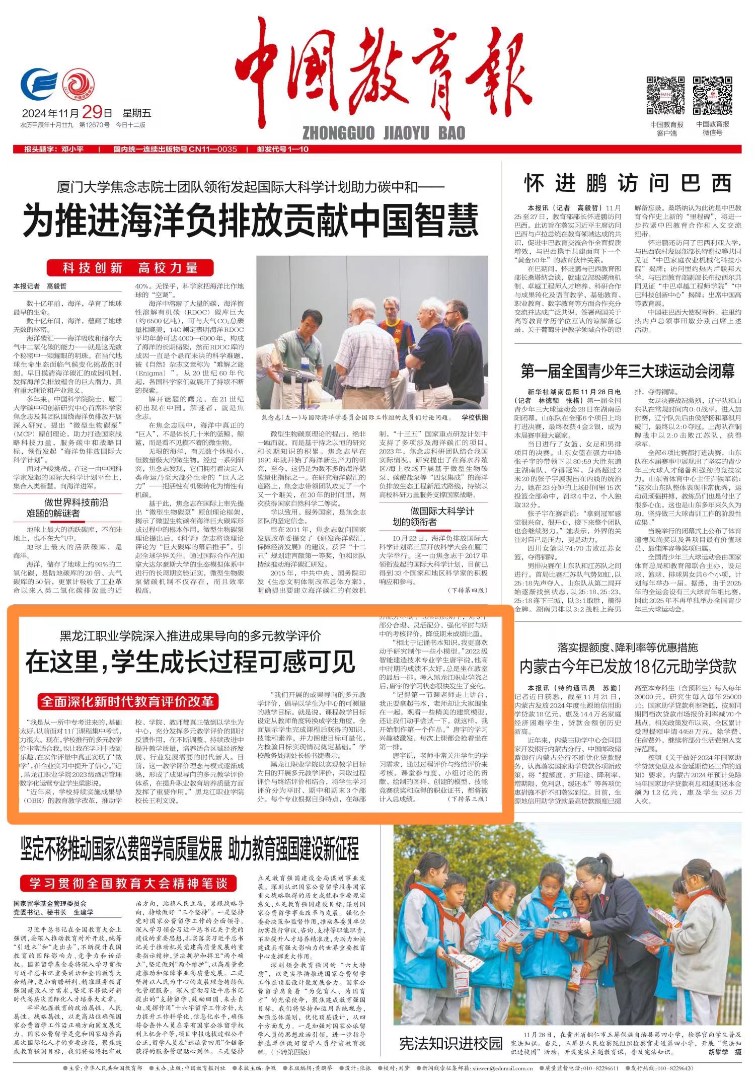 《中国教育报》2024年11月29日第1版报道——