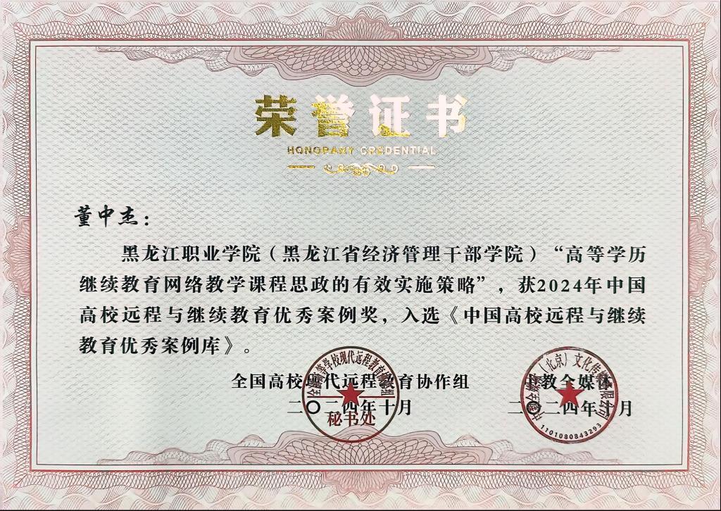 学院自建网络教学平台“龙知网”课程数量、课程质量、用户数量、服务范围均列省内同类型院校之首,《审计实务》等四门课程先后入选黑龙江省高等学校课程思政示范课程和教学团队。2024(第十届)中国远程与继续教育大会,伟德官网成人学历教育斩获三项殊荣,校本部教学点荣获2024年度高校继续教育优秀教学点,申报的两项案例双双入选“中国高校远程与继续教育优秀案例库”。