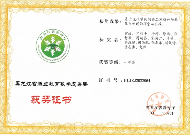 先后荣获黑龙江省职业教育教学成果一等奖、首批职业教育示范性现代产业学院立项、黑龙江省第一批现场工程师专项培养项目立项、2024年省级高级技能人才培训基地建设项目立项等。