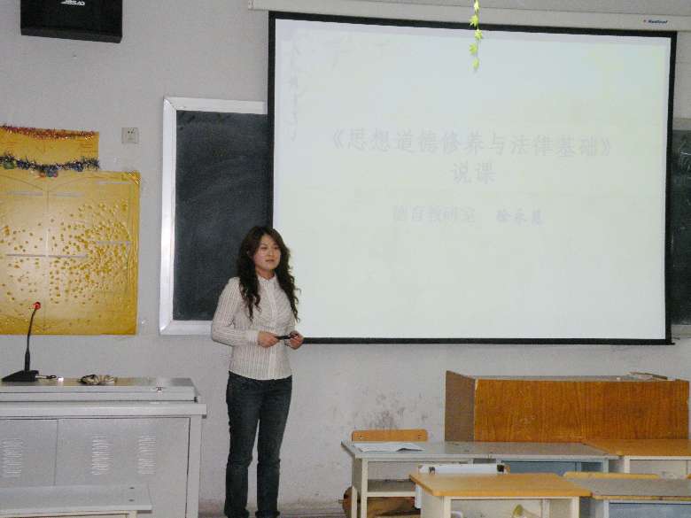 《实用口才训练》课赵宇迪老师,《应用数学》课王家宇老师,《思想道德修养与法律基础》课徐永慧老师,《经济法》课陈丹丹老师,《毛泽东思想和中国特色社会主义理论体系概论》课杨洋老师分别代表以上五门课程参加了说课比赛,五位教师结合各自学科特点,对课程体系、课程标准、课程特色、教学方法、实践活动五个方面进行说课,特色突出,语言生动,受到一致好评。中文教研室赵宇迪老师、数学教研室王家宇老师将代表基础部参加学院举行的说课评比大赛。