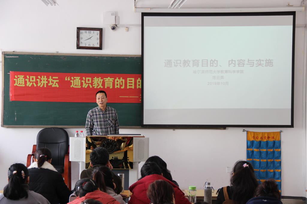 11月13日下午,哈尔滨师范大学教育科学学院教授陈云奔应邀到我院进行讲座。学院所有无课教师听取了本次“通识目的、内容与实施”的教学讲座。