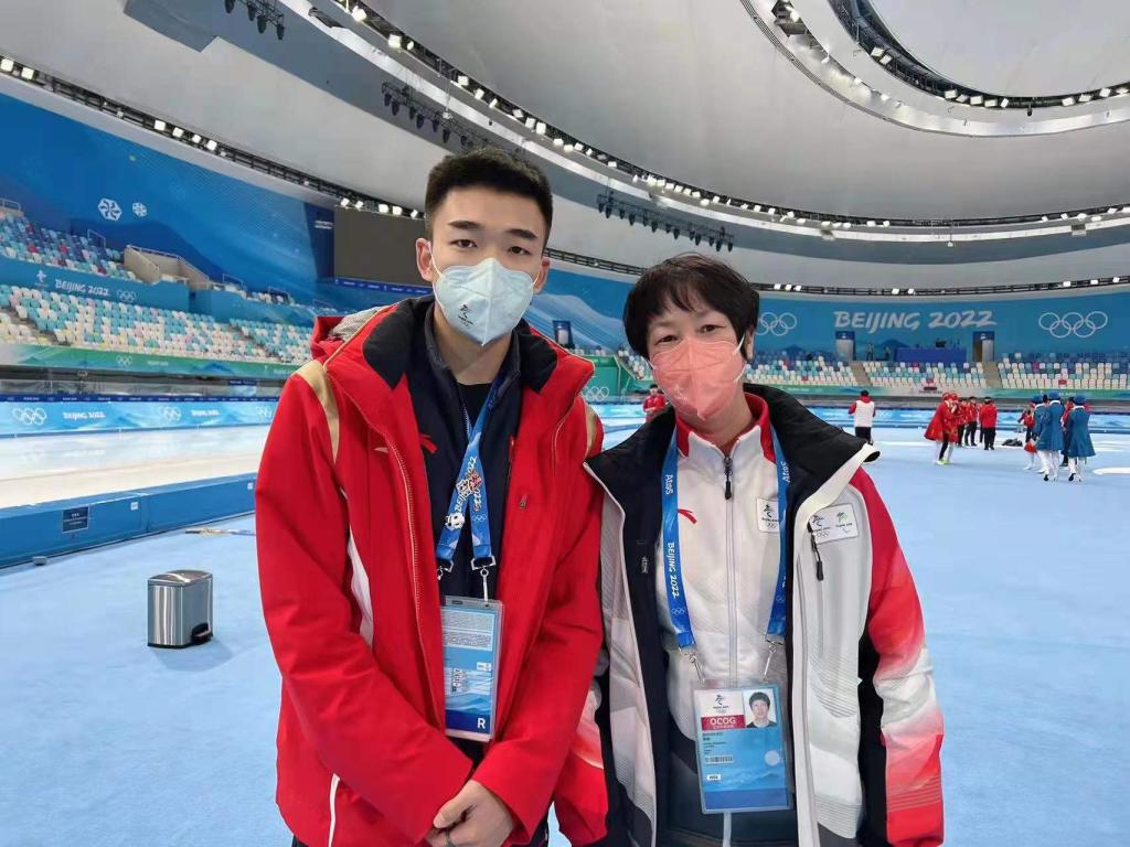 裁判员张巍与速度滑冰冠军高亭宇合影