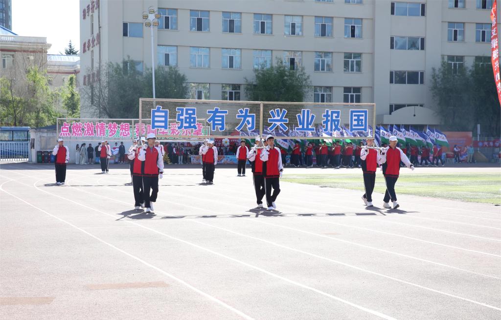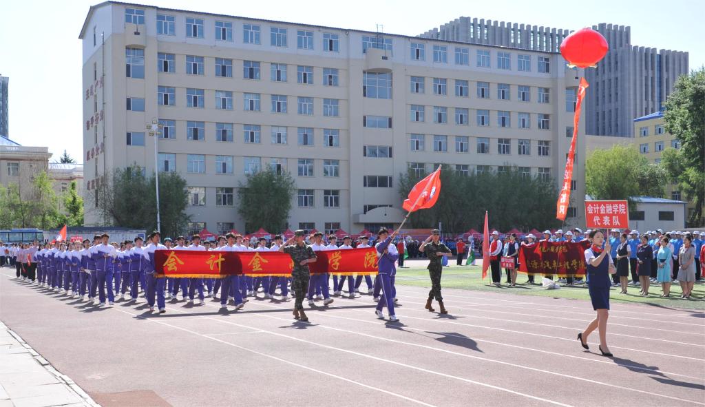 伴随着嘹亮激昂的乐曲,国旗护卫队、会徽队、标语队、刀旗队、花束队、花环队、礼仪队和九支代表队迈着矫健的步伐入场,接受大会检阅。各方队身着统一服装,喊着嘹亮的口号经过主席台,充分展示了“龙职”师生积极向上的精神风貌,赢得在场师生的阵阵喝彩。