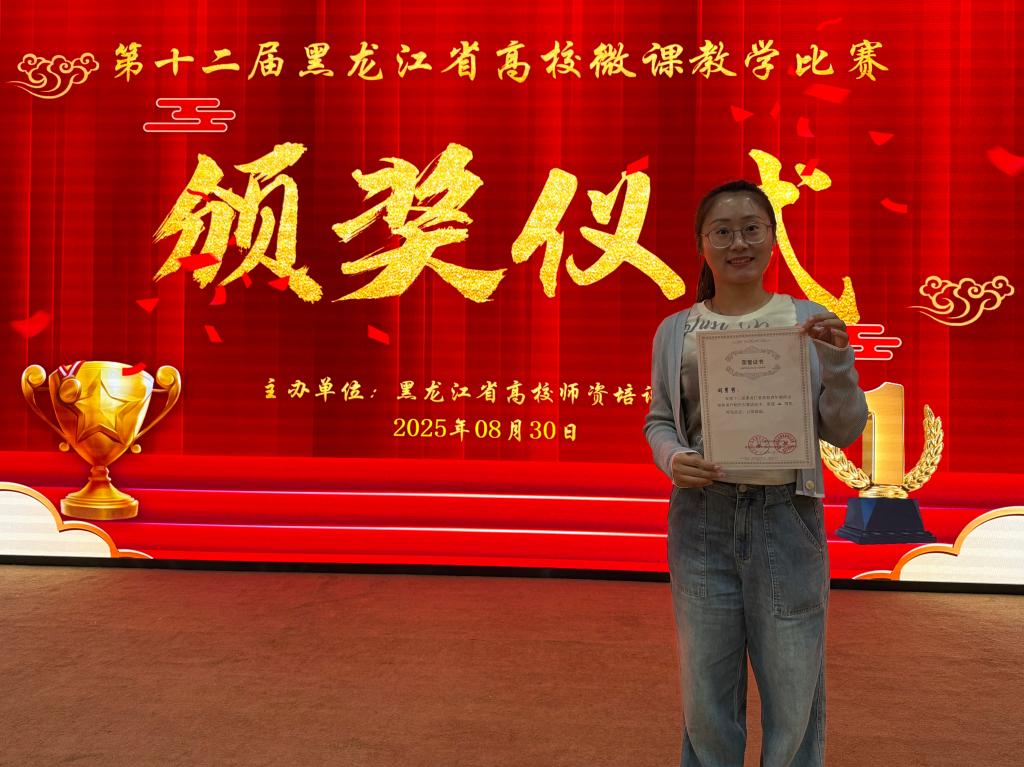 2025年8月30日,第十二届黑龙江省高校微课教学比赛暨多媒体课件制作大赛颁奖仪式在哈尔滨师范大学隆重举行。我院传统文化与美育教研室主任唐诗的作品《中华优秀传统文化——讲信修睦》荣获微课教学比赛二等奖,中文教研室青年教师阚男男的作品《红消香断有谁怜——黛玉之死鉴赏》荣获多媒体课件制作大赛二等奖。