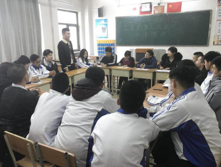 为全面推进专业成果导向教学改革,全面准确地掌握本专业学生学情,工业机器人技术团队召开学情分析研讨会。本次会议由教研室主任鲍敏老师主持,骨干教师乔阳、王莹、张祎玮以及16级、17级共20名学生参加研讨。